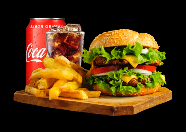 Hambúrguer simples, 1 porção de batata, 1 gasosa